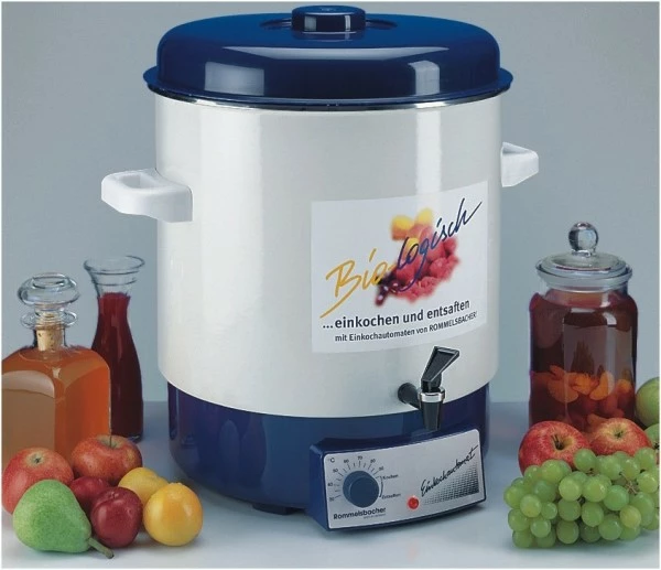 Mit diesem praktischen Glühwein- und Einkochautomaten können Sie das ganze Jahr die Früchte des Sommers genießen. Obst, Gemüse, Säfte und Marmeladen lassen sich darin auf gesunde und komfortable Weise konservieren. Zur Winterzeit ist er ideal zum Ausschenken von heißem Glühwein oder Punsch. Die eingestellte Temperatur wird durch den Präzisionsthermostat zuverlässig gehalten und über den integrierten Ablaufhahn können Getränke bequem direkt in Tassen abgefüllt werden. Auch zum Warmhalten größerer Mengen Speisen ist dieses Gerät ein beliebter Helfer bei Festen und Veranstaltungen. Mit dem als Zubehör erhältlichen Entsafter Aufsatz (Type EA 1803) kann der KA 1801 auch als Dampfentsafter genutzt werden.