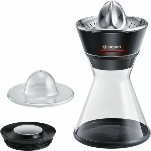 Mit der Zitruspresse von Bosch erhalten Sie ein elegantes Designobjekt für Ihre Küche. Die hochwertige Edelstahl-Presse verleiht diesem Küchengerät ein edles Outfit und die stylische Glaskaraffe wirkt futuristisch und schick.