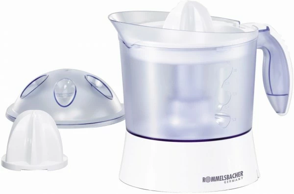 Fünf mal täglich Vitamine naschen. Ein Kinderspiel mit der Zitruspresse von Rommelsbacher. Dank der zwei unterschiedlichen Saftkegel kann Saft aus Orangen, Grapefruits und auch Zitronen gewonnen werden. Da genügt ein leichter Druck, den Rest übernimmt der sanfte Motor. Der Rechts-/Linkslauf sorgt dafür, dass jeder Tropfen genutzt wird. Der Fruchtfleischgehalt kann separat eingestellt werden. Mit dem abnehmbaren Saftbehälter lässt sich der Vitaminstoß leicht in ein Glas gießen. Alle abnehmbaren Teile können in der Spülmaschine gereinigt werden.