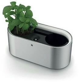 Rücken Sie Kräuter und Zimmerpflanzen ins rechte Licht: Der WMF Indoor-Kräutergarten hat Platz für zwei Pflanzen und glänzt nicht nur mit seiner edlen Cromargan®-Oberfläche, sondern auch mit einer edlen LED-Beleuchtung. Der Clou: Einfach das Edelstahlgehäuse berühren und dank Easy Touch Technologie ein einzigartiges Licht-Ambiente in drei Helligkeitsstufen zaubern. Das intelligente Bewässerungssystem hält Kräuter lange frisch – so kann man das Gießen ruhig für ein paar Tage vergessen.